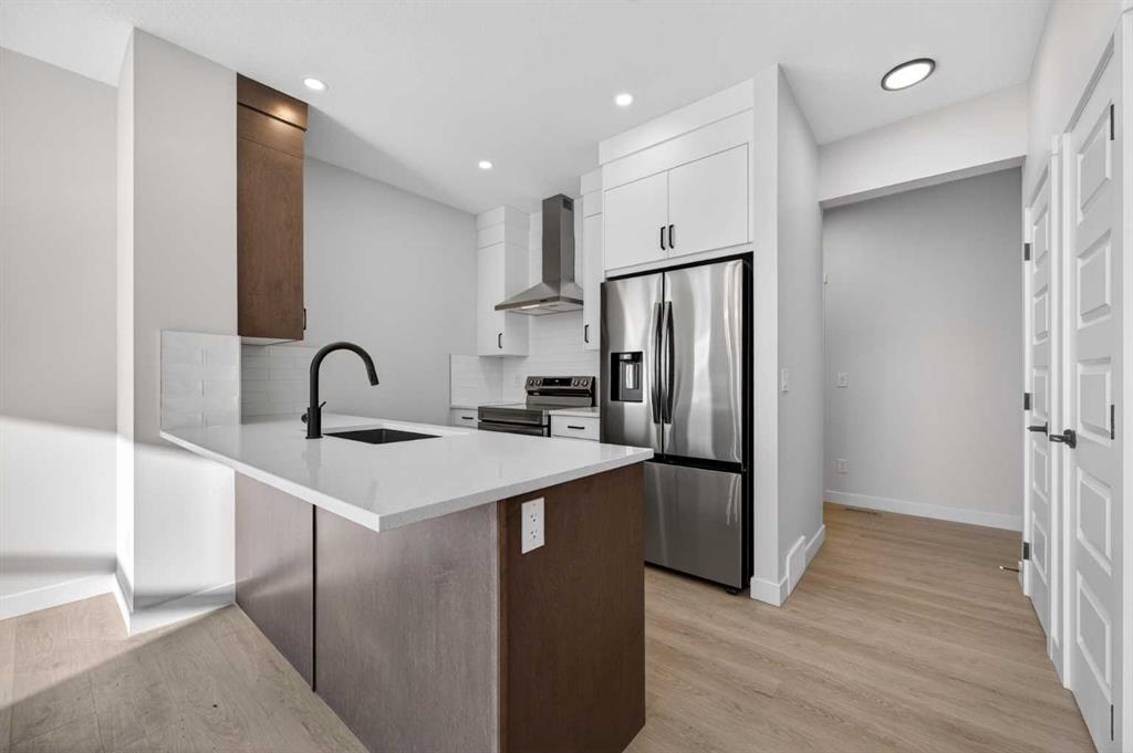 Includes: n/a Site Influences: Back Lane Property InformationProperty Type: Row/Townhouse Home Style: Townhouse Year Built: 2025 Total Floor Area: 1,410 sq. ft. Brokerage: LPT Realty Listed Date: Please login or create an account Community InformationCity/Town: Airdrie Community: Bayview ExteriorLot Size: 0.04 sq.ft. Lot Shape: Back Lane Exterior: Vinyl Siding, Wood Frame Construction: Vinyl Siding,Wood Frame Frontage: 6.10M 20`0" Front Exposure: S Roof: Asphalt Shingle Parking: Double Garage Attached Total Parking: 2 InteriorHeating: Electric, Forced Air Basement: Full Floor Finish: Carpet, Vinyl Fireplace Details: For Sale RoomsTotal Bedrooms: 3 (Bedrooms Above: 3) Bathrooms: Full: 2 / Half: 1 Above Grade: 6 Legal, Financial & PossessionZoning: R2-T Legal Description: Lot/Unit: Lot/Unit:,Plan: 2311886,Block: Tax: 690.00 Possession: Negotiable Occupancy: New; Never Occupied Restrictions: Restrictive Covenant,Utility Right Of Way Listing Courtesy of LPT Realty The data included in this display is deemed to be reliable, but is not guaranteed to be accurate by the Calgary Real Estate Board. MLS®: A2284668 - Bayview Townhouse $474,900