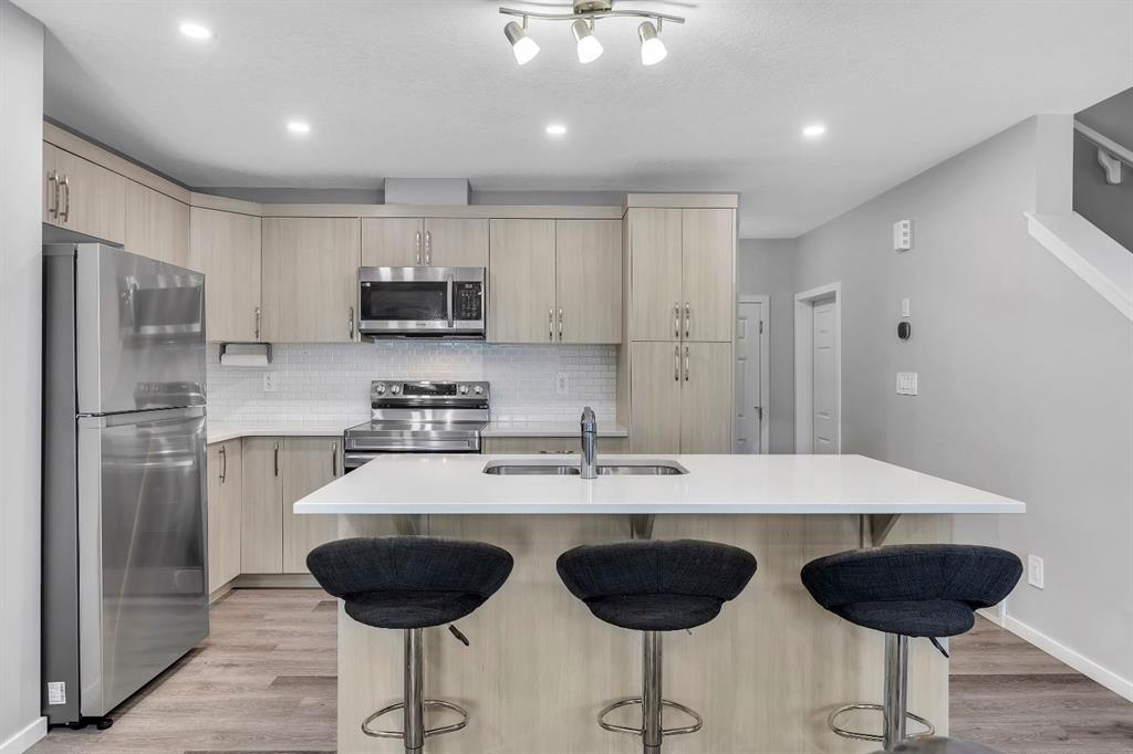 LOWEST-PRICED TOWNHOME IN AIRDRIE WITH 3 BEDS | 2.5 BATHS | DOUBLE CAR GARAGE | NO CONDO FEES – This 2022-built townhome in Southwinds, Airdrie SW offers the ideal comb... MLS®: A2265023 - South Windsong 2 Storey $444,900