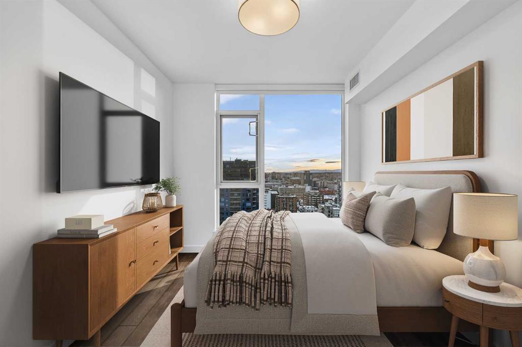 Perched high on the 16th floor, this exceptional corner end unit offers panoramic, unobstructed views of the city skyline, Memorial Park, and the Rocky Mountains. Expansi... MLS®: A2277099 - Beltline Apartment-Single Level Unit $640,000