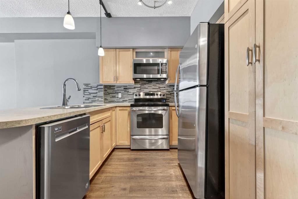 Walk in, drop your bag on the custom built-in desk, and you're already home. This isn't 657 square feet of compromise — it's a downtown condo that actually works. A ded... MLS®: A2303816 - Chinatown Apartment-Single Level Unit $249,900