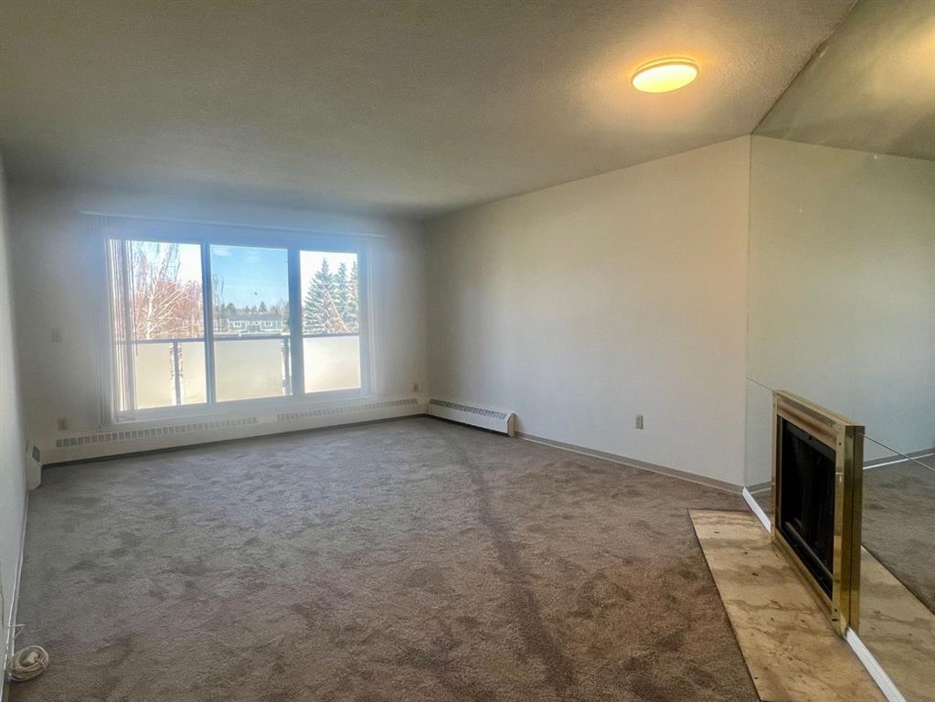 Great opportunity for first time buyers, down-sizers and Investors to own this 1- bedroom, 1-bathroom condo on the 3rd level of Landmark Gardens. Recent upgrades in the unit include fresh paint throughout, new flooring, new toilet, sink and vanity in bathroom. Bright kitchen with lots of cupboards and counter space, spacious living room with wood burning fireplace. New flooring throughout the unit. West facing balcony overlooks the courtyard. Assigned under ground parking. Laundry facilities on each floor. Building underwent exterior updates completed in 2019. These include new siding, insulation, vinyl windows, vinyl sliding doors and balcony railings. Condo fees of $574.23 include all utilities except electricity, cable and internet. Easy access to transit, minutes to downtown Calgary as well as Calgary International Airport. Close to amenities, shopping and major routes. Vacant for quick possession. MLS®: A2257666 - Greenview Apartment-Single Level Unit $155,000