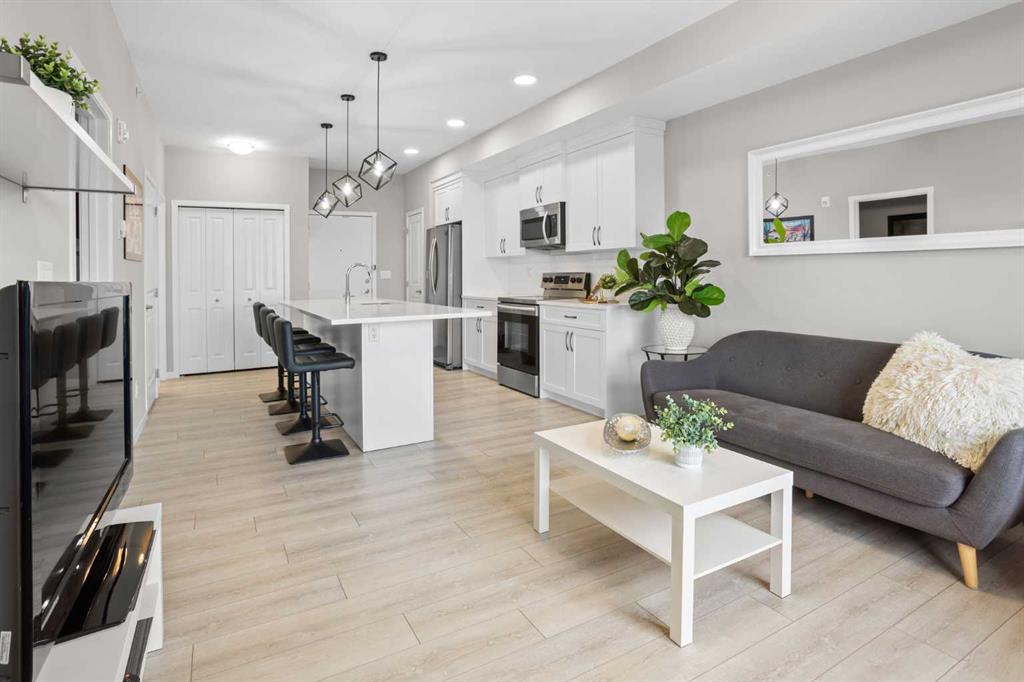 Includes: Shelves in living room and den, All Lighting as shown in Listing Photos, Mailbox Key Property InformationProperty Type: Apartment Home Style: Apartment-Single Level Unit Year Built: 2019 Total Floor Area: 696 sq. ft. Brokerage: RE/MAX First Listed Date: Please login or create an account Community InformationCity/Town: Calgary Community: Harvest Hills ExteriorExterior: Brick, Concrete, Vinyl Siding, Wood Frame Construction: Brick,Concrete,Vinyl Siding,Wood Frame Front Exposure: E Roof: Flat Parking: Garage Door Opener, Heated Garage, Parkade, Secured, Titled, Underground Total Parking: 1 InteriorHeating: Baseboard, Natural Gas Floor Finish: Carpet, Tile, Vinyl Plank Fireplace Details: For Sale RoomsTotal Bedrooms: 2 (Bedrooms Above: 2) Bathrooms: Full: 1 / Half: 0 Above Grade: 4 Legal, Financial & PossessionZoning: M-1 Legal Description: Lot/Unit: Lot/Unit:,Plan: 1812025,Block: Tax: 2092.00 Monthly Fee: 416 Possession: 15 Days / Neg,30 Days / Neg,Negotiable Occupancy: Owner Restrictions: Yes Listing Courtesy of RE/MAX First The data included in this display is deemed to be reliable, but is not guaranteed to be accurate by the Calgary Real Estate Board. MLS®: A2285239 - Harvest Hills Apartment-Single Level Unit $330,000