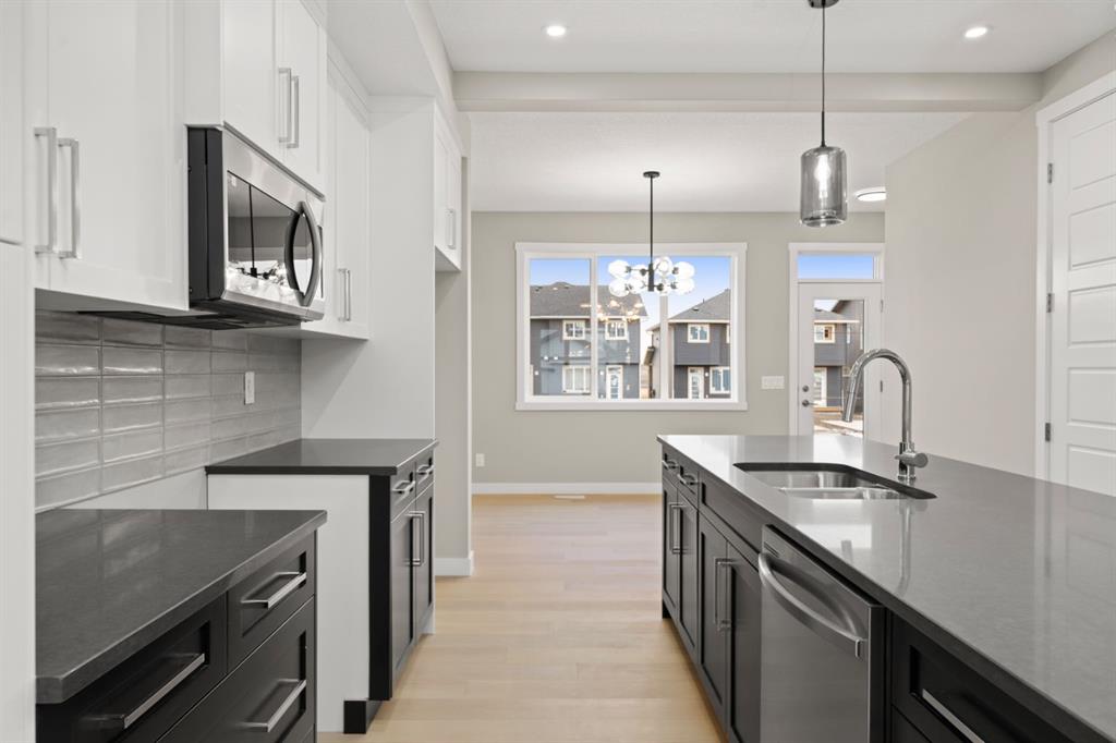 Welcome to 110 Sora Gardens! This kitchen is a standout: modern quartz countertops, stainless appliances, plus a generous island that works for meal prep, homework, or h... MLS®: A2284927 - Hotchkiss 2 Storey,Attached-Side by Side $504,900