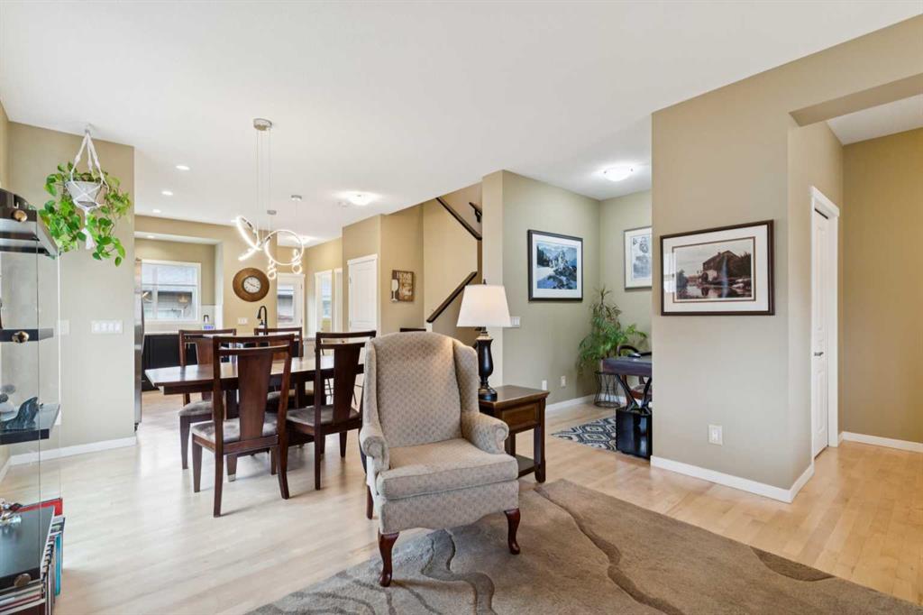 This standout semi-detached home offers the space, independence, and curb appeal buyers are looking for—without condo fees. Perfectly positioned on a corner lot, this property features a large landscaped and fully fenced yard (freshly stained in 2025), a welcoming front porch, and a detached double garage with a paved rear lane. Inside, a dedicated foyer provides practical storage before opening into a bright, open-concept main floor. Thanks to its corner placement, the home is filled with natural light from additional windows, while thoughtful airflow design allows for a refreshing cross-breeze. The living room centers around a cozy gas fireplace, flowing seamlessly into the dining area with a versatile nook—ideal for a small desk or extra storage. The kitchen is both functional and stylish, featuring granite countertops, a large island, standard appliances including a garburator, and easy access to the backyard. The back door has a convenient phantom screen door—perfect for enjoying warmer months, especially when paired with the deck with a built-in BBQ gas line. Upstairs, you’ll find three well-sized bedrooms, including a primary retreat with a tray ceiling, walk-in closet, and private ensuite. Additional updates include refinished hardwood floors (2020), updated tile in the rear entry and ensuite (2020), and carpet replaced in 2018, along with a water softener for added comfort. Located just steps from Divine Mercy School and within walking distance to Mahogany pathways, wetlands, and schools, this home offers an unbeatable lifestyle. Mahogany is one of Calgary’s most sought-after lake communities, known for its vibrant atmosphere, scenic walking paths, and year-round recreational opportunities. Residents enjoy access to the lake, beaches, parks, and a growing selection of shops and dining options, making it a dynamic and family-friendly place to call home. MLS®: A2288879 - Mahogany 2 Storey,Attached-Side by Side $599,900