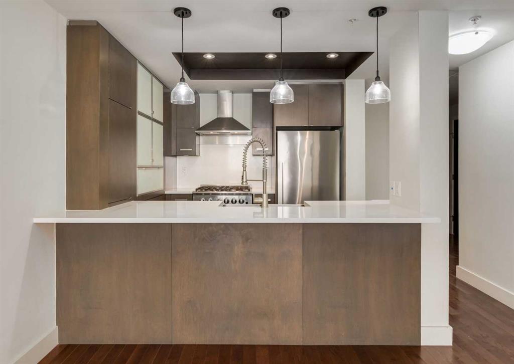 Welcome to The Highbury, where modern style meets everyday convenience. This beautifully designed unit features soaring ceilings, rich hardwood flooring, and stunning flo... MLS®: A2292088 - Shawnee Slopes Apartment-Single Level Unit $259,900