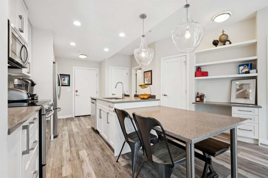Includes: Window coverings, TV mounts, Property InformationProperty Type: Apartment Home Style: Apartment-Single Level Unit Year Built: 2017 Total Floor Area: 845 sq. ft. Brokerage: LB Hubbard Realty Group Listed Date: Please login or create an account Community InformationCity/Town: Calgary Community: West Springs ExteriorExterior: Metal Siding , Other, Stone Construction: Metal Siding ,Other,Stone Front Exposure: SE Parking: Guest, Titled, Underground Total Parking: 1 InteriorHeating: In Floor Basement: None Floor Finish: Ceramic Tile, Vinyl Plank Fireplace Details: For Sale RoomsTotal Bedrooms: 2 (Bedrooms Above: 2) Bathrooms: Full: 2 / Half: 0 Above Grade: 5 Legal, Financial & PossessionZoning: M-1 d105 Legal Description: Lot/Unit: Lot/Unit:,Plan: 1612118,Block: Tax: 2493.00 Monthly Fee: 481 Possession: Immediate Occupancy: Vacant Restrictions: Restrictions Listing Courtesy of LB Hubbard Realty Group The data included in this display is deemed to be reliable, but is not guaranteed to be accurate by the Calgary Real Estate Board. MLS®: A2271404 - West Springs Apartment-Single Level Unit $399,000