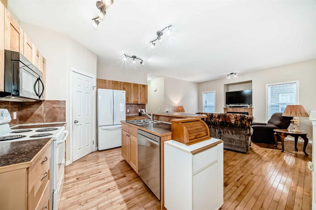 Step into a spacious tiled entryway that offers the option to head up or down. The main floor welcomes you with a bright and inviting great room, featuring a cozy gas fir... MLS®: A2300163 - Carstairs Attached-Side by Side,Bi-Level $349,900