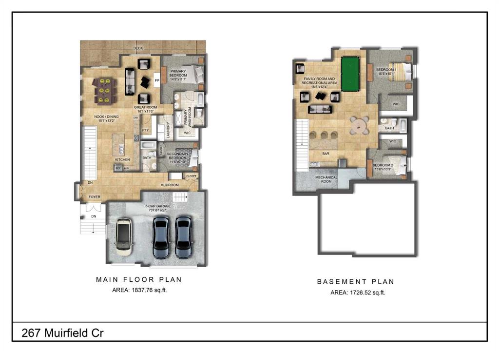 Includes: None Site Influences: Back Yard, Backs on to Park/Green Space, Creek/River/Stream/Pond, Rectangular Lot Property InformationProperty Type: Residential Detached Single Family Home Style: Bungalow Year Built: 2026 Total Floor Area: 1,838 sq. ft. Brokerage: Royal LePage Benchmark Listed Date: Please login or create an account Community InformationCity/Town: Lyalta Community: Lakes of Muirfield ExteriorLot Size: 0.15 sq.ft. Lot Shape: Back Yard,Backs on to Park/Green Space,Creek/River/Stream/Pond,Rectangular Lot Exterior: Cement Fiber Board, Stone, Wood Frame Construction: Cement Fiber Board,Stone,Wood Frame Frontage: 17.15M 56`3" Front Exposure: NW Roof: Asphalt Shingle Parking: Triple Garage Attached Total Parking: 6 InteriorHeating: Fireplace(s), Forced Air, Natural Gas Basement: Full Floor Finish: Carpet, Tile, Vinyl Plank Fireplace Details: For Sale RoomsTotal Bedrooms: 4 (Bedrooms Above: 2) Bathrooms: Full: 3 / Half: 0 Above Grade: 5 Legal, Financial & PossessionZoning: RC Legal Description: Lot/Unit: Lot/Unit:,Plan: 2211277,Block: Possession: Upon Completion Occupancy: New; Never Occupied Restrictions: Architectural Guidelines Listing Courtesy of Royal LePage Benchmark The data included in this display is deemed to be reliable, but is not guaranteed to be accurate by the Calgary Real Estate Board. MLS®: A2275497 - Lakes of Muirfield Bungalow $949,900