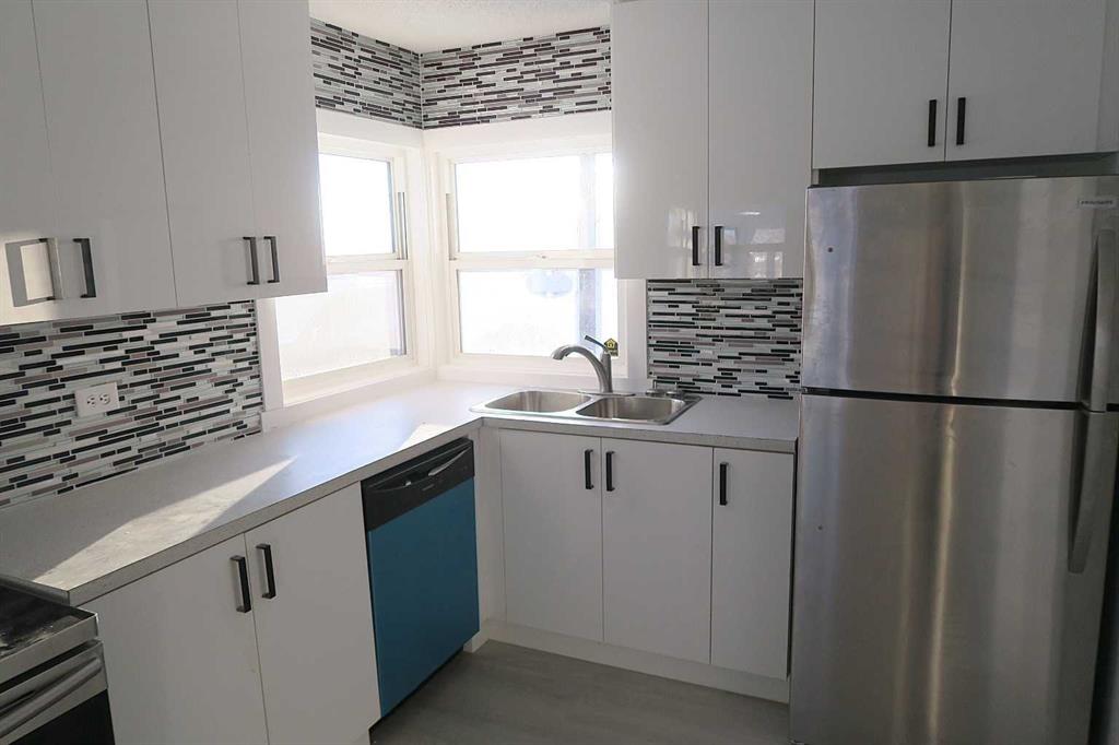 STUNNING NEW FLOOR to CEILING KITCHEN CABINETS accented with STAINLESS STEEL APPLIANCES ,corner windows ,eating area with corner windows. Big living room with view to wes... MLS®: A2271518 - Morrin Bungalow $229,900