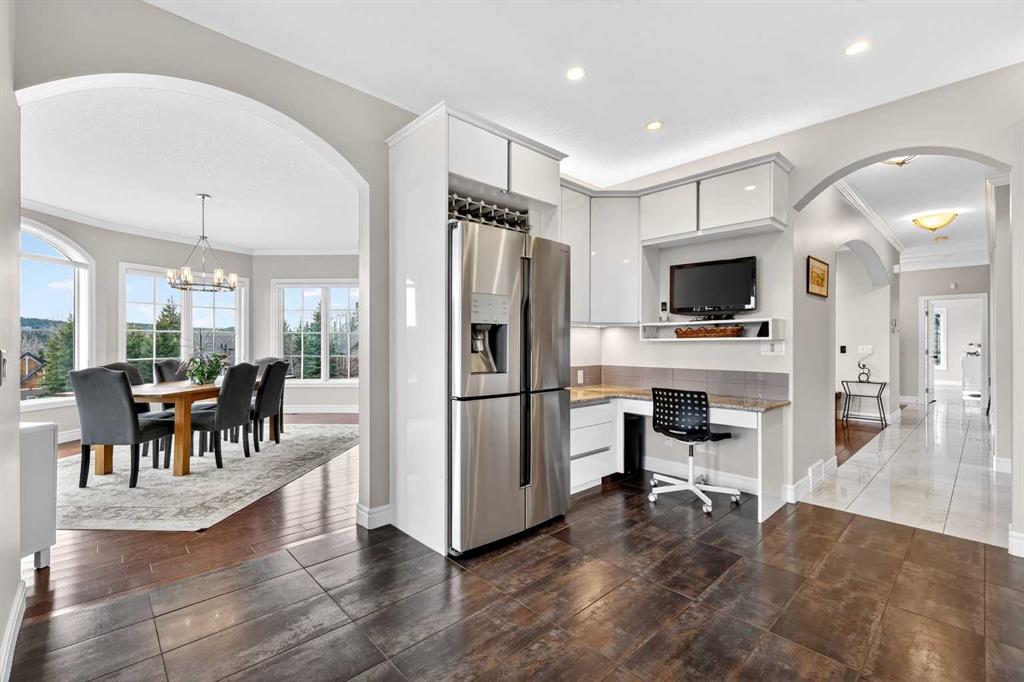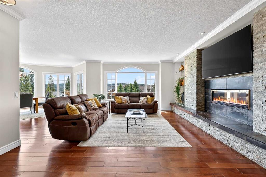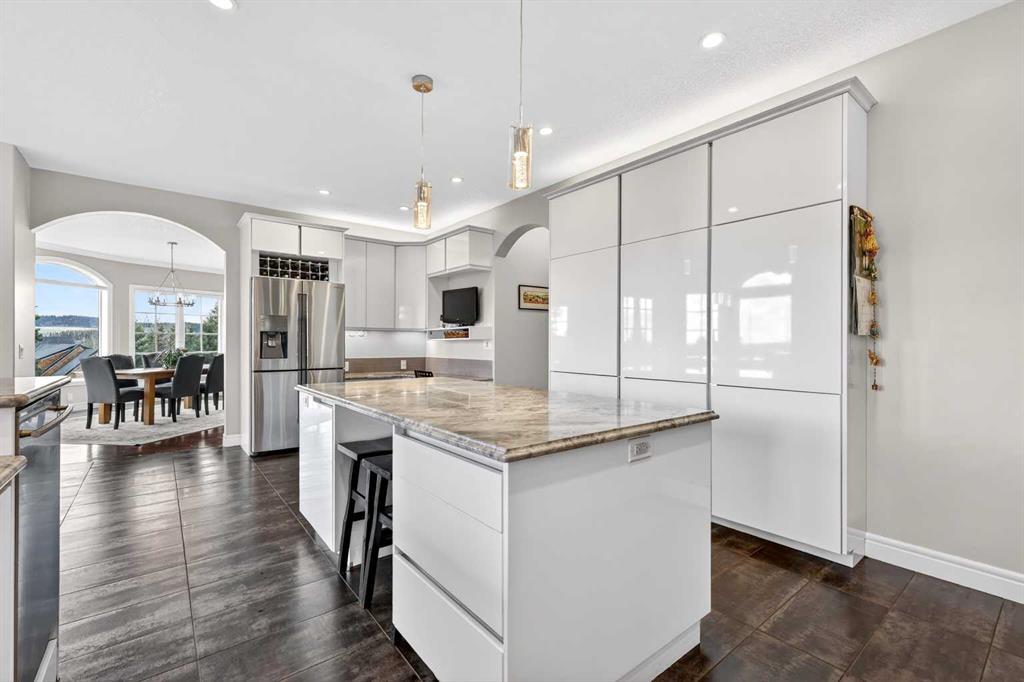 Tucked into the rolling foothills just west of Calgary, this exceptional estate home in Hawks Landing offers a rare opportunity to experience luxury country living without sacrificing convenience. Surrounded by quiet natural beauty and expansive skies, yet only minutes from the city and the renowned Priddis Greens Golf & Country Club, this is a home designed for those who value space, privacy, and refined comfort. From the moment you enter, the home reveals a thoughtful design that blends elegant entertaining spaces with functional everyday living. The expansive main living area features a striking low-profile fireplace that anchors the room, while large windows frame views of the surrounding landscape and fill the home with natural light. The living room flows seamlessly into a spacious dining area, creating an inviting setting for memorable gatherings and intimate dinners alike. At the heart of the home is a beautifully appointed European-inspired kitchen, where sleek cabinetry, stainless steel appliances, and an oversized island provide both style and practicality. Abundant counter space ensures the kitchen is equally suited for casual family meals or hosting larger occasions. The main floor is anchored by a magnificent primary suite designed as a private retreat. Generously proportioned, the suite features a spa-inspired ensuite complete with dual vanities, an air soaker tub, and a separate oversized glass and tile shower offering a daily escape into relaxation. A dedicated main floor office or study adds flexibility for working from home or enjoying a quiet space to read or reflect. Upstairs, the home continues to impress with a second private primary retreat, occupying the entire upper level. This tranquil space provides exceptional privacy and comfort, making it ideal for homeowners seeking separation from the main living areas. The fully finished lower level with impressive 9-foot ceilings and oversized windows expands the home’s versatility even further. Designed with both entertaining and family living in mind, it features a large recreation and games area complemented by a full wet bar—perfect for hosting guests or enjoying relaxed evenings at home. Two additional spacious bedrooms, including one with its own private ensuite, along with another full bathroom, create a layout that works beautifully for multigenerational living, visiting family, or extended stays by friends. A triple attached garage provides ample space for vehicles, recreational equipment, and storage, supporting the active lifestyle that comes naturally in this remarkable setting, and the serene backyard oasis features a large deck and cozy outdoor fireplace complete with gazebo that is perfect for relaxing or entertaining guests. Life in Hawks Landing offers a sense of calm and openness that is increasingly rare. This is more than a home - it is a lifestyle defined by space, serenity, and understated luxury, with easy access to the Rocky Mountains - all within easy reach of Calgary. MLS®: A2304699 - Hawks Landing 1 and Half Storey $1,499,900