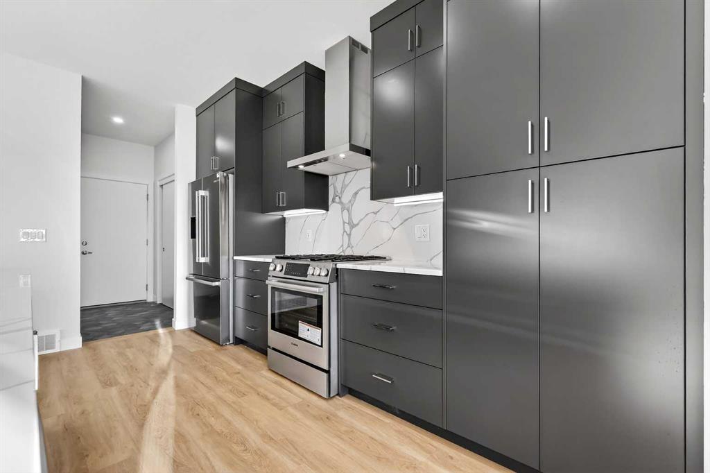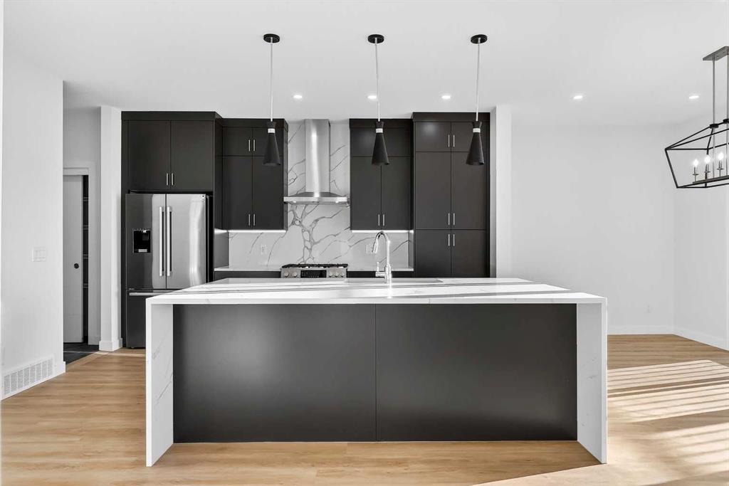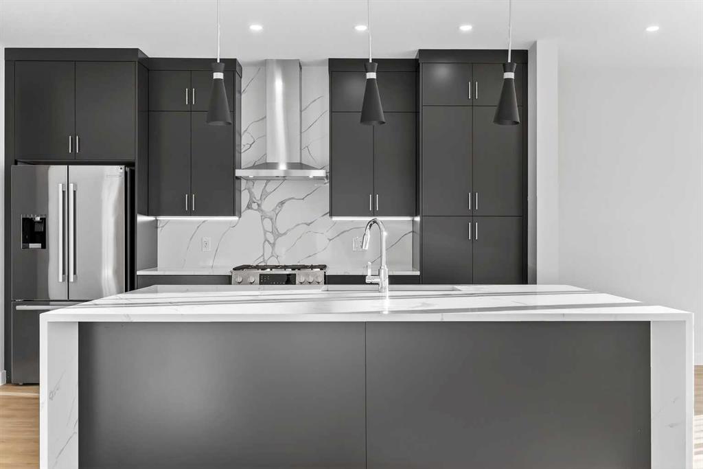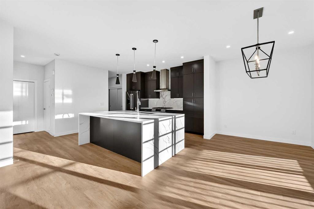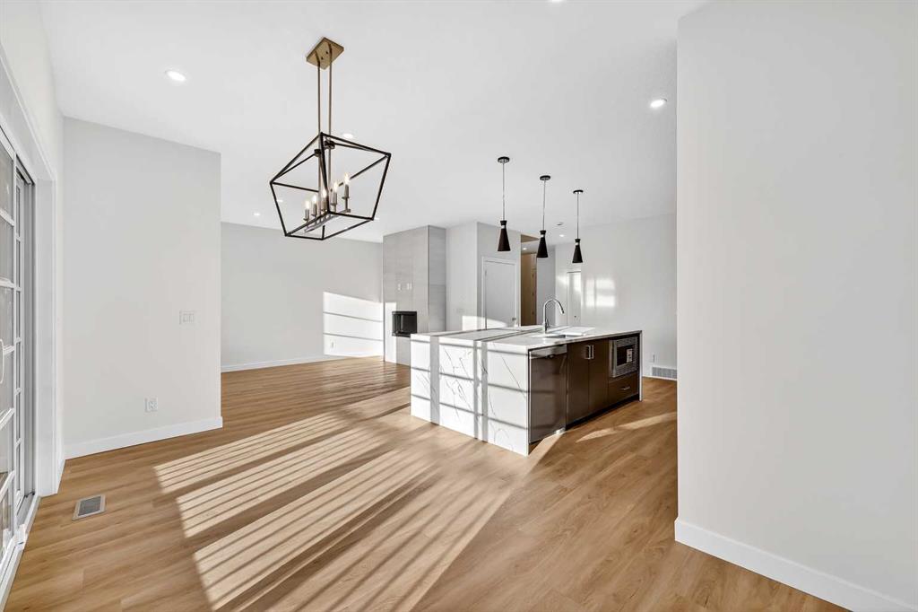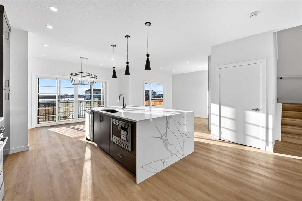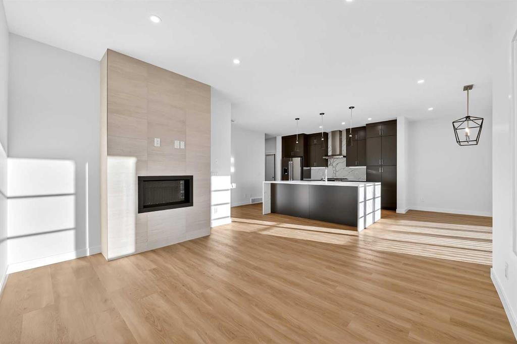 Experience the height of sophisticated living in this highly coveted luxury townhome, where a generous floor plan meets modern comfort and refined finishes. Proudly presented by StreetSide – this thoughtfully designed unit features 3 bedrooms, 2.5 bathrooms, and a front attached double car garage. The heart of the home is a spacious kitchen with a large central island, polished white quartz countertops, upgraded stainless steel appliances including a gas range, and elegant sliding French patio doors that opens to your covered deck area - ideal for both everyday living and entertaining. A cozy fireplace anchors the living room, while luxury vinyl plank flooring flows throughout the main living areas, complemented by gorgeous tile in the entry and bathrooms. The primary ensuite is a private sanctuary, complete with heated tile flooring, double sinks, a freestanding soaker tub, and an oversized tile-and-glass shower delivering spa-inspired comfort at home. The unfinished basement with roughed-in plumbing provides future potential for additional living space tailored to your needs. Professional landscaping and fencing complete your new home. Ideally located in the award-winning community of Harmony, residents enjoy Mickelson National Golf Course, private lake amenities, scenic walking and biking trails, and a wellness-focused lifestyle—just a shorty drive from Calgary city minutes and 45 minutes from the Rocky Mountains, where nature and convenience come together effortlessly MLS®: A2280242 - Harmony 2 Storey $769,900