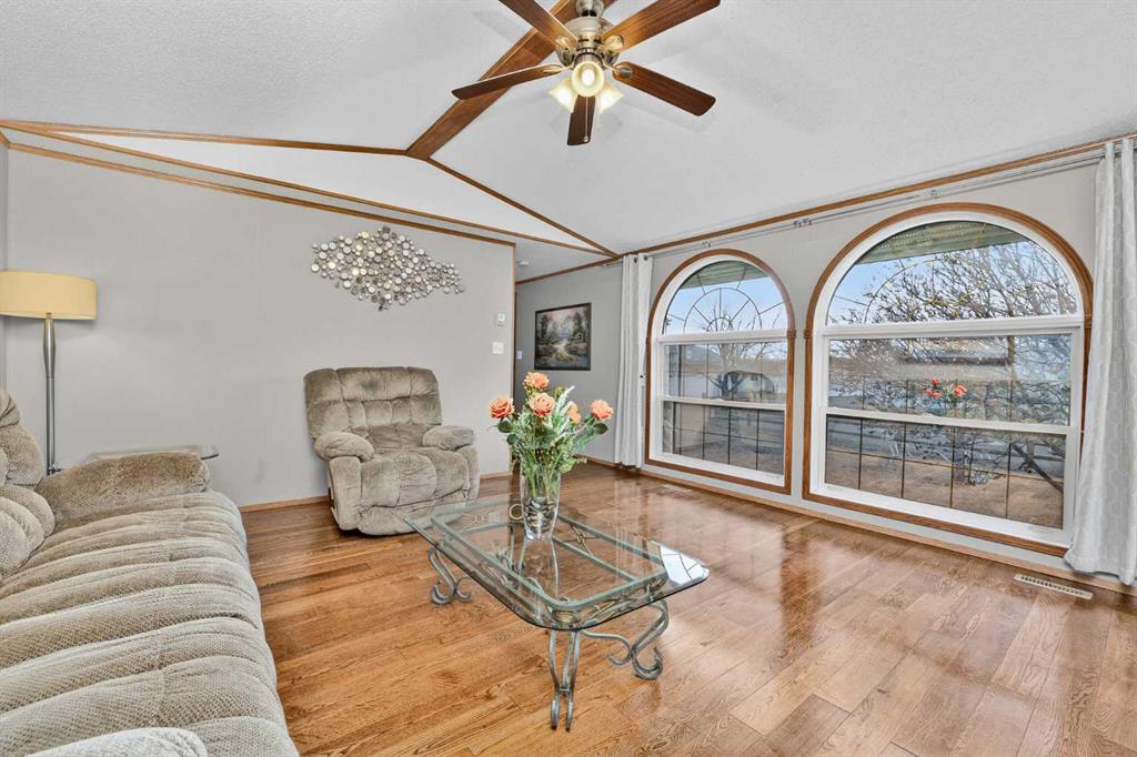 Includes: Portable Air Conditioner, Gas BBQ, Central Vac, included as is no warranties Property InformationProperty Type: Mobile Home Style: Mobile Home-Single Wide Year Built: 1995 Total Floor Area: 1,205 sq. ft. Brokerage: KIC Realty Listed Date: Please login or create an account Community InformationCity/Town: Strathmore Community: Ranch Estates ExteriorExterior: Vinyl Siding Construction: Vinyl Siding Roof: Asphalt Shingle Parking: Parking Pad, Single Garage Detached Total Parking: 3 InteriorHeating: Forced Air, Natural Gas Floor Finish: Carpet, Hardwood, Laminate Fireplace Details: For Sale RoomsTotal Bedrooms: 3 (Bedrooms Above: 3) Bathrooms: Full: 2 / Half: 0 Above Grade: 5 Legal, Financial & PossessionLegal Description: Lot/Unit: Lot/Unit:,Plan:,Block: Tax: 1343.44 Possession: Immediate Occupancy: Owner Restrictions: Board Approval,Age Restriction - 55+,Pet Restrictions or Board approval Required Listing Courtesy of KIC Realty The data included in this display is deemed to be reliable, but is not guaranteed to be accurate by the Calgary Real Estate Board. MLS®: A2285698 - Ranch Estates Mobile Home-Single Wide $245,000